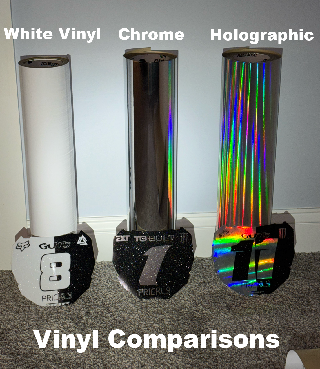 - If you choose chrome vinyl all white in in your desingn will turn to chrome when printed